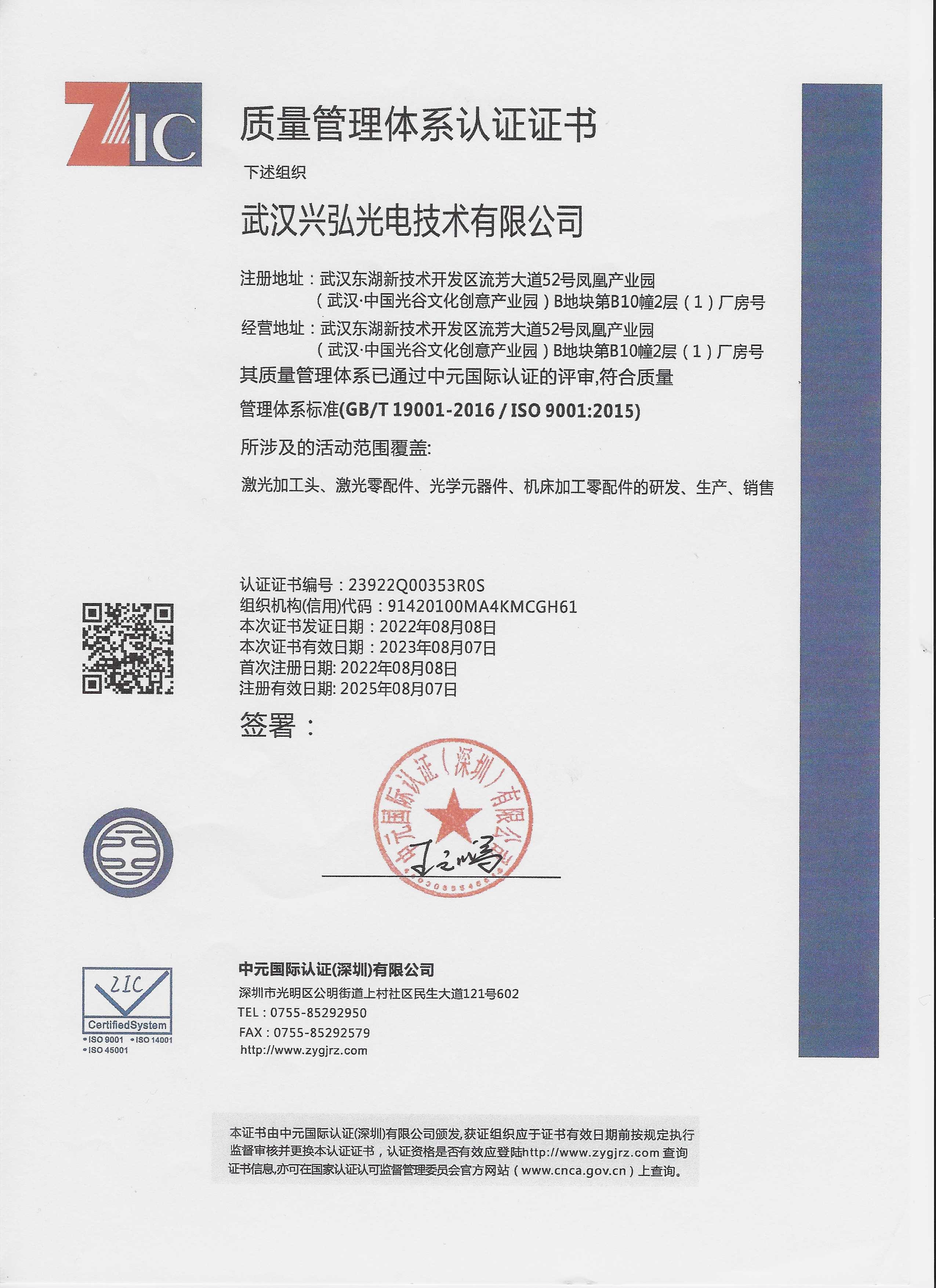 • ISO9001证书