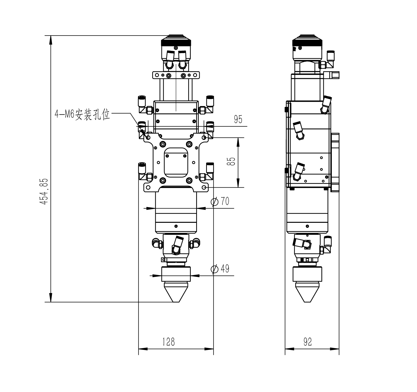 非球面聚焦镜设计可承受更高功率,全镜水冷,加强镜片使用寿命,最高可承受6kw;